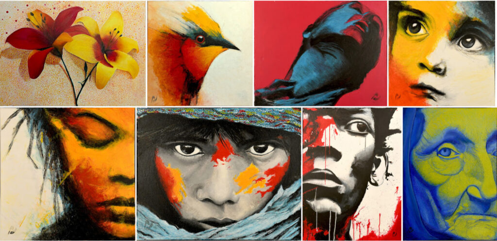 Aujourd’hui, son œuvre picturale s’inscrit dans la continuité de ce parcours hybride, où se rencontrent culture graphique, héritage du design et sensibilité contemporaine aux images. Sa pratique explore les tensions entre spontanéité du geste pictural et construction visuelle héritée du graphisme, dans un dialogue constant entre mémoire des images et expérimentation plastique.